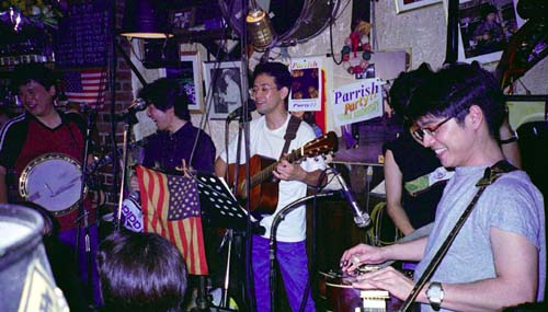 この日、ホンキートンク店内はこのように満員御礼状態でした。Parrish10周年記念に相応しく賑やかで楽しいムードで、私たちバンドを盛り上げていただきました。本当にありがたいです。 毎月こんな風にお客さんいっぱいだったらいいなあ・・・でもそこは水商売、なかなかそうはいきませんね。 |